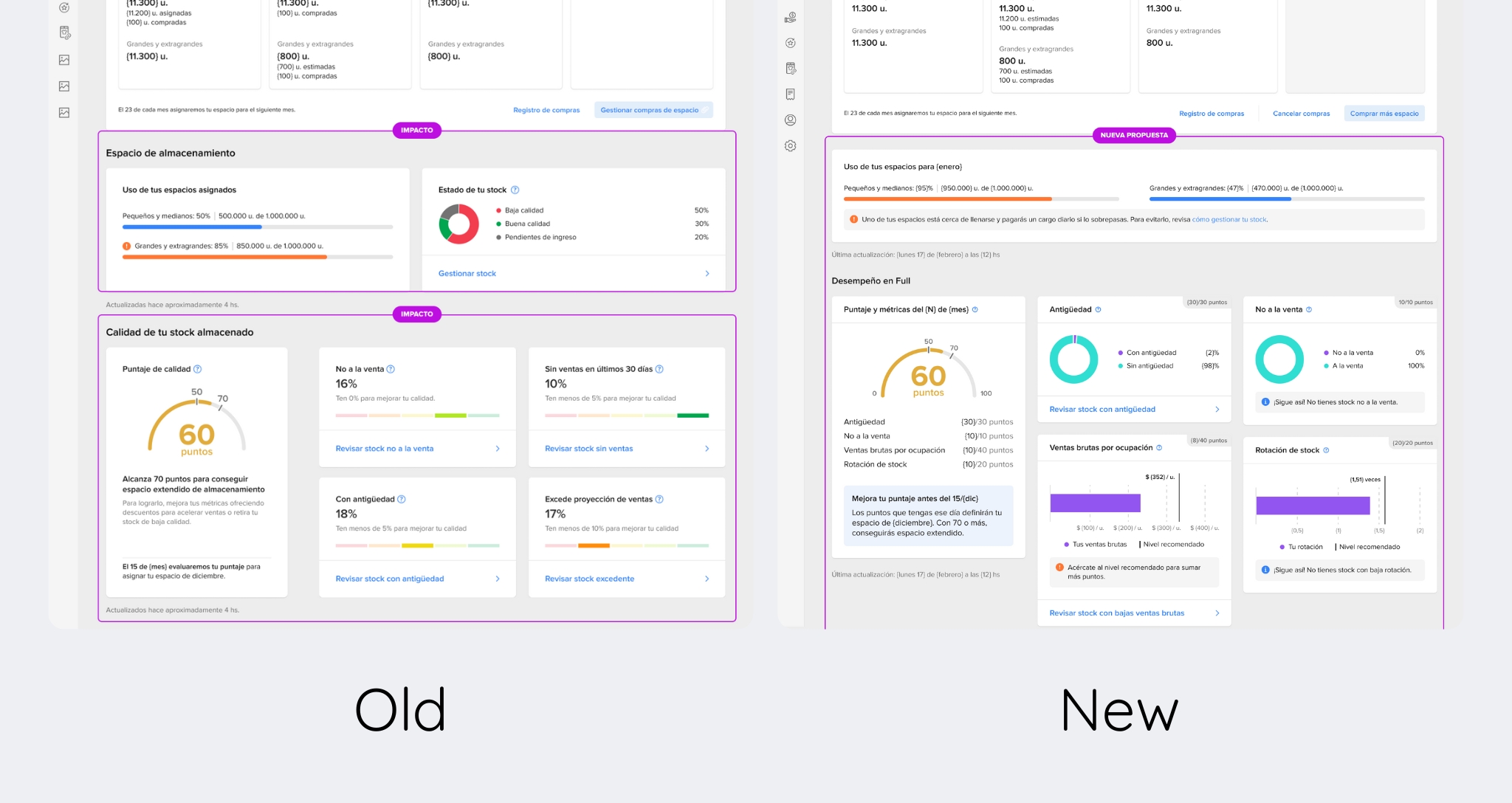 The existing IPI model relied on rigid score thresholds and mixed metrics with different units and timeframes. This caused abrupt changes in storage allocation, low predictability for sellers, and a high volume of support contacts.
