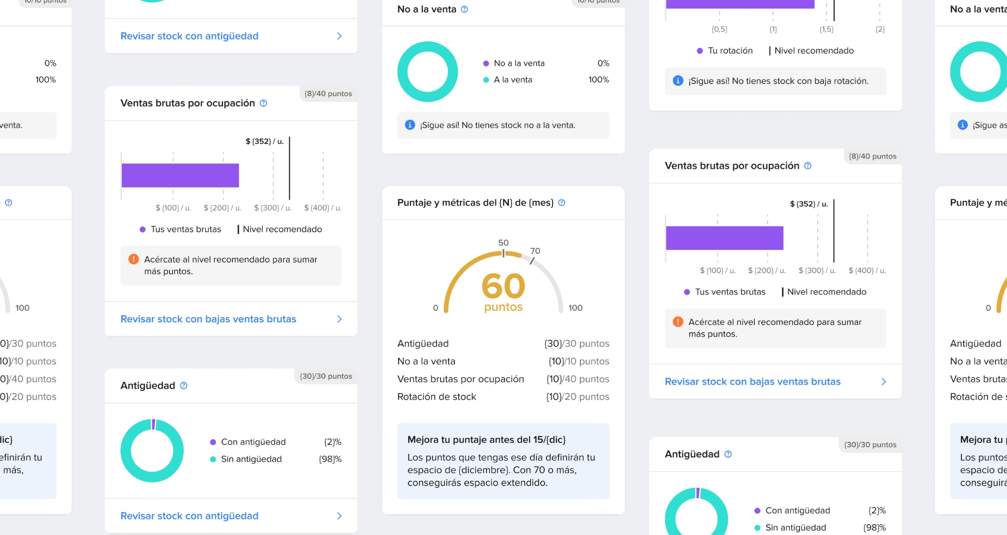 We designed a clear communication framework across dashboards and system messages to explain how inventory performance works and how seller behavior impacts storage over time.